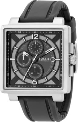 A very architectural chronograph dial fits perfectly inside of a square case. Grey and black make this watch great for any occasion and the black silicone strap ensures a snug, comfortable fit.Case Size: 43mm